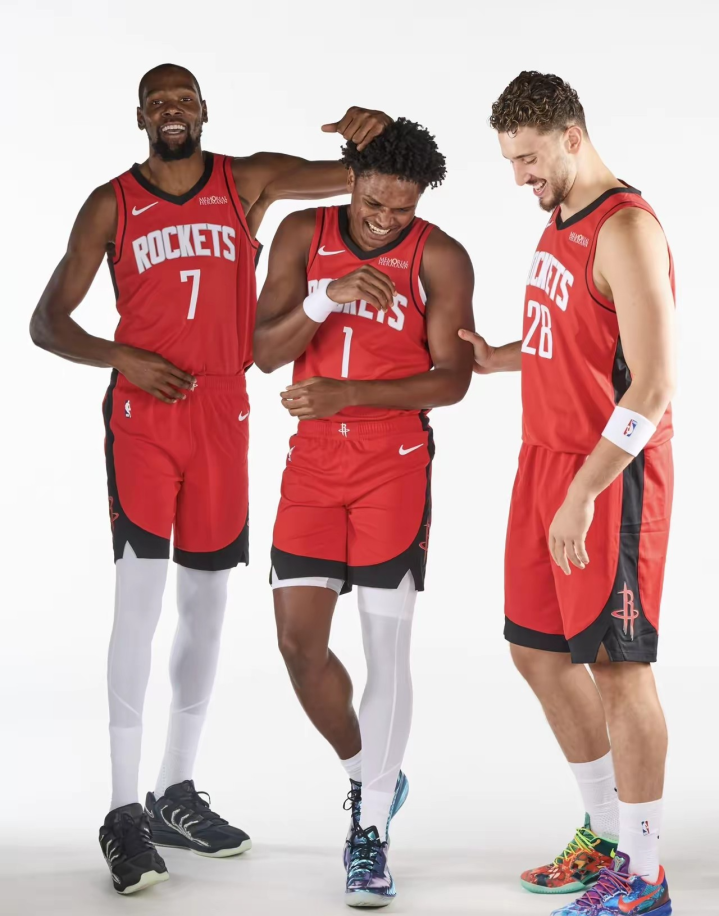 另一种猜测是排出更侧重于篮板和防守的阵容,由阿门·汤普森打一号位,尹森担任二号位,贾巴里·史密斯三号位,杜兰特担任四号位,申京担任中锋。无论乌度卡最终选择哪种阵容,都是剑走偏锋,不用像谢泼德和霍乐迪这样的纯控卫球员,核心思路都是围绕杜兰特和申京这两个核心展开。谢泼德暂时大概率不会首发,同时乌度卡也要重点考察阿门汤普森的控场表现,毕竟他很可能会成为新赛季火箭队一号位的主要人选。
