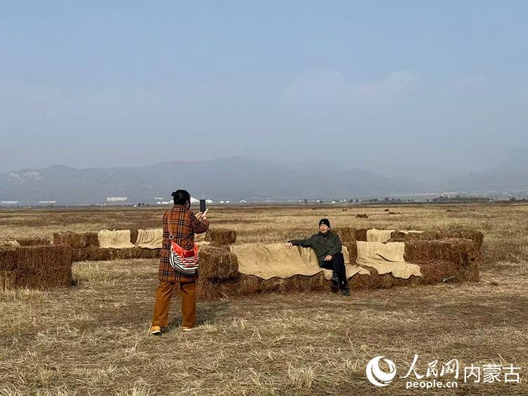 任安心夫妇在敕勒川草原游玩拍照。人民网记者 寇雅楠摄